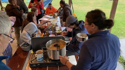 Vaříte-li v nějakých skupinkách, doporučuju vzít si kanystr na pitnou vodu, ať se tolik nenaběháte s petkou…